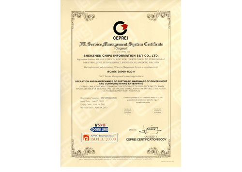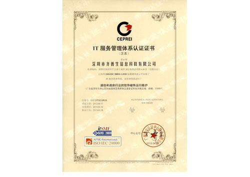 • IT服務管理體系認證證書