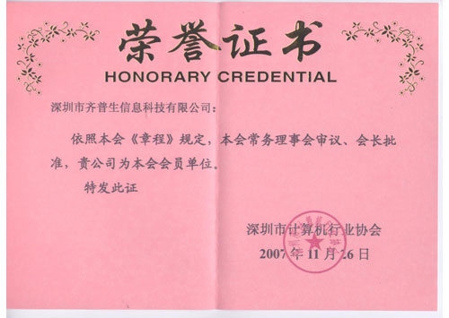 • 計算機行業協會會員榮譽(證書)