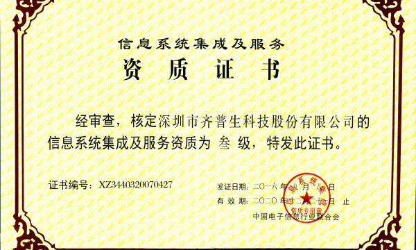 • 計算機信息系統集成三級資質